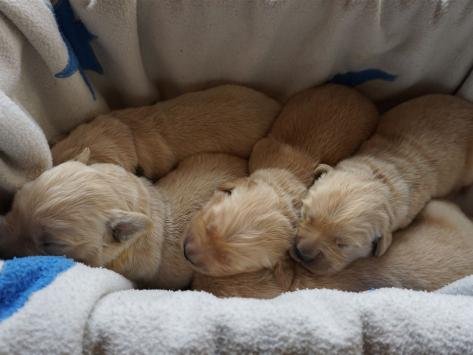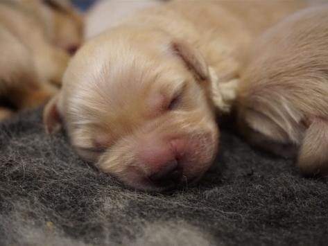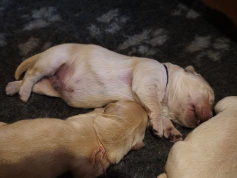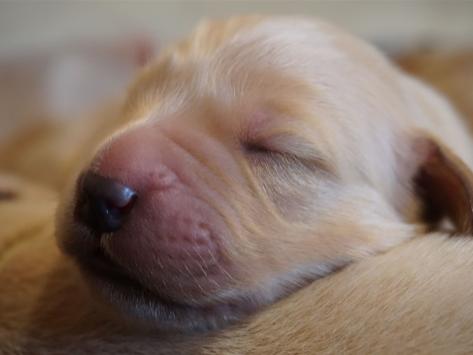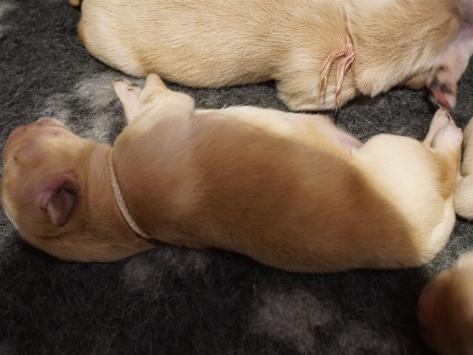 Unser I-Wurf entwickelt sich weiterhin prächtig und Cessy´s Körpertemperatur pendelt sich auch schon langsam wieder fast im Normalbereich ein. (Normaltemperatur Hund liegt bei 37,5 - 38,0 °Celsius - eine Woche nach der Geburt ist die Körpertemperatur erhöht - bis zu 39,5 ° sind noch ok). Unsere I-Wurf Rüden haben alle nach sieben Tagen ihr Gewicht schon verdoppelt und bei den Hündinnen fehlt auch nicht mehr viel. Das ist ein echter Rekord! Ansonsten passiert natürlich noch nicht allzu viel in der Kiste, da es sich die ersten zwei Lebens Wochen unserer I´s in erster Linie nur ums "Gewicht zunehmen" dreht. Das heißt im zwei Stunden Rhythmus wird genuckelt und dann gleich wieder geschlafen. Die Fortbewegung sieht für einen Hund auch noch sehr unprofessionell aus und erinnert mehr an eine Robbe. Unsere Welpen sind ja nach wie vor blind und taub - einzig der Geruch- und Tast-Sinn ist schon seit der Geburt voll einsatzfähig. Ab dem 10. Lebenstag werden sich langsam Gehörgang und Augen öffnen. Es wird dann aber immer noch einige Tage dauern bis sie scharf sehen und gut hören können. So ab dem 14. Lebenstag werden sie sich langsam aufrichten und die ersten richtigen Gehversuche werden dann gemacht (ohne dass der Bauch am Boden rutscht :-))