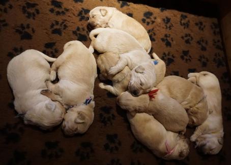 ..... unser I-Wurf ist am 01.Dezember 6 Wochen alt geworden. Sie haben sich im Welpenhaus prima eingewöhnt und genießen jetzt die Freiheit ihrem immer größer werdenden Bewegungsdrang im abgesicherten Teil des Gartens freien Lauf lassen zu können. Zum Leidwesen unserer Besucher sind die aktiven Fasen oft spät abends, nachts und in den Morgenstunden - so daß sie oft wieder ein schlafendes Fellknäul vorfinden. :-)