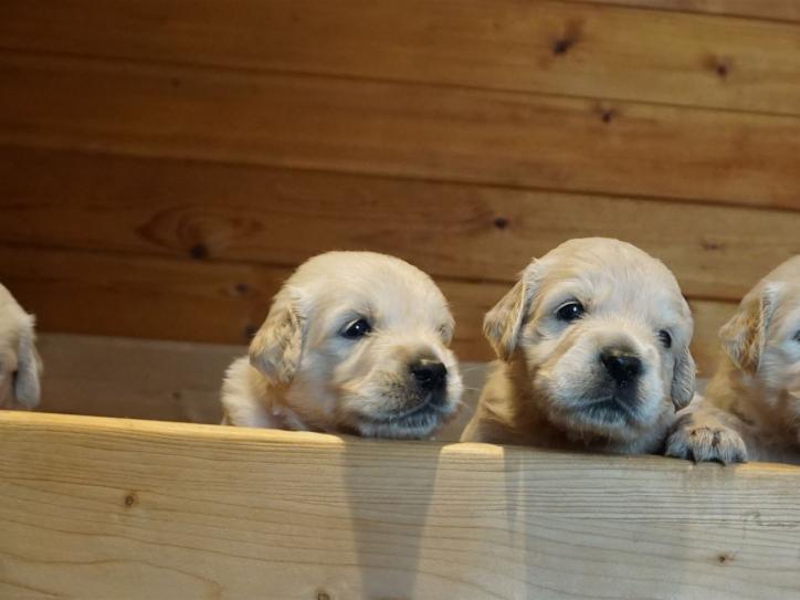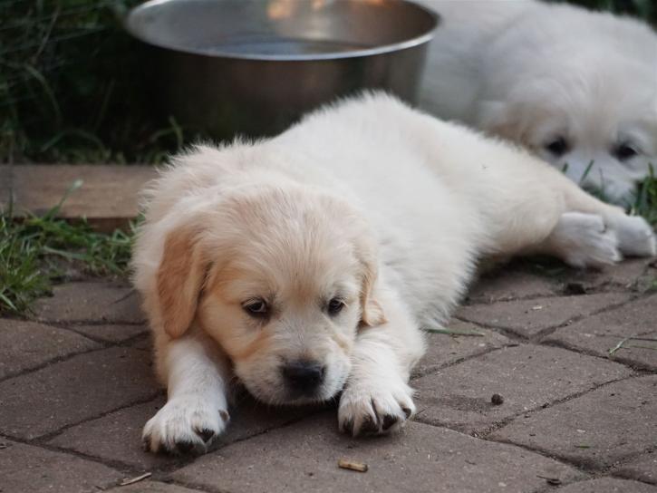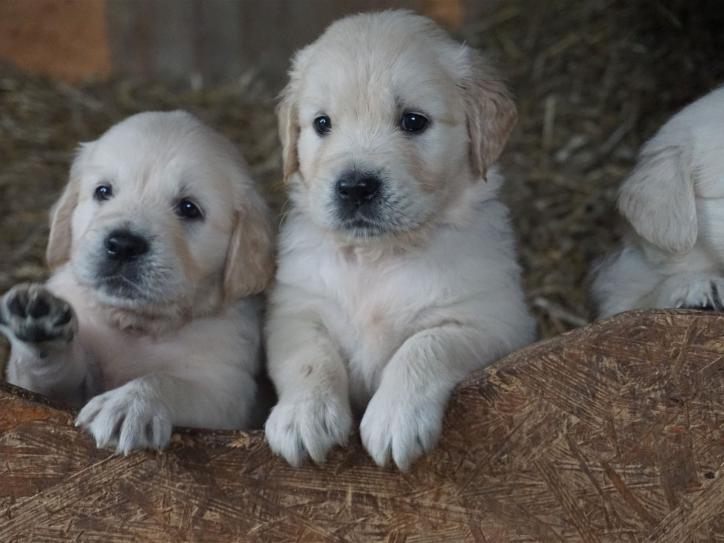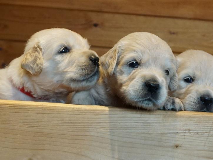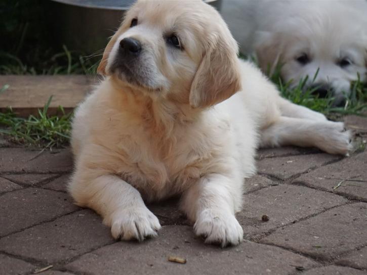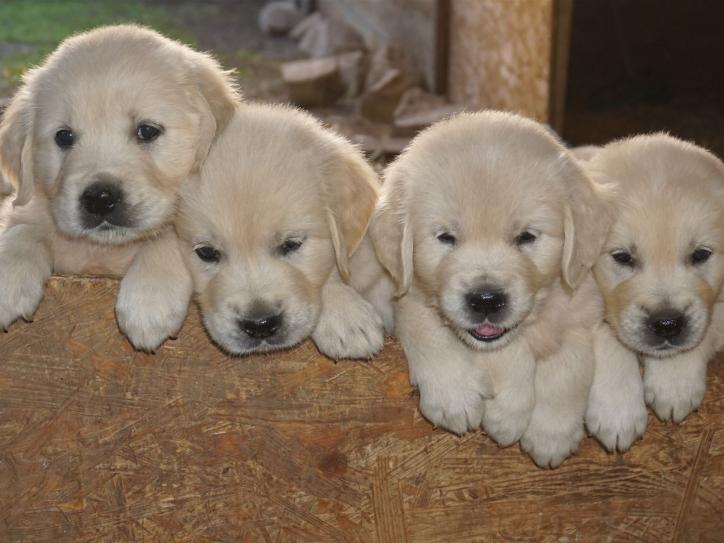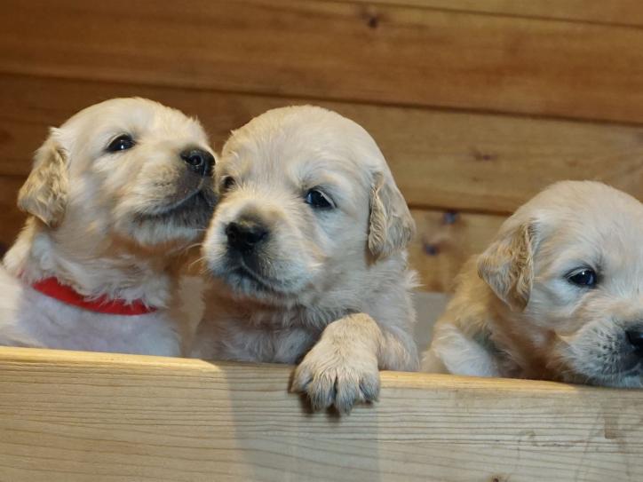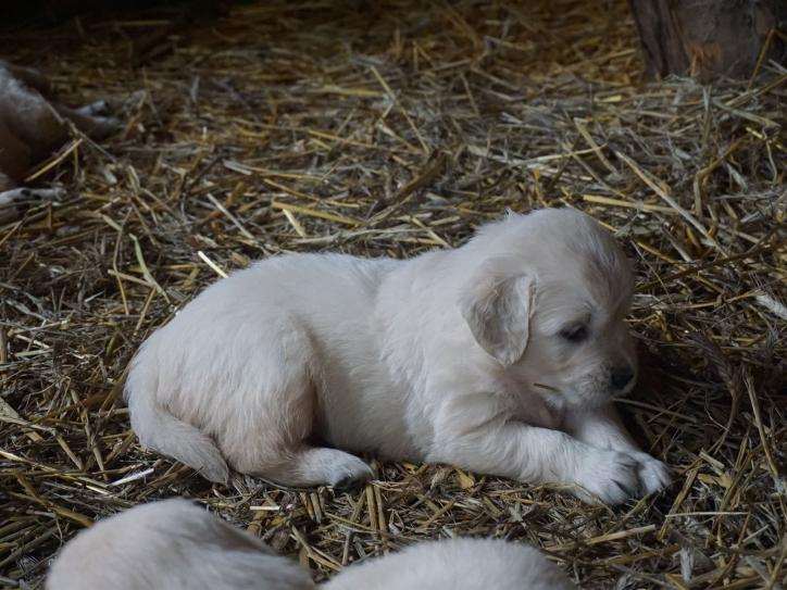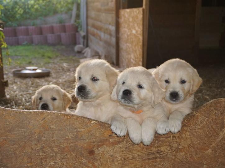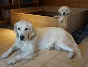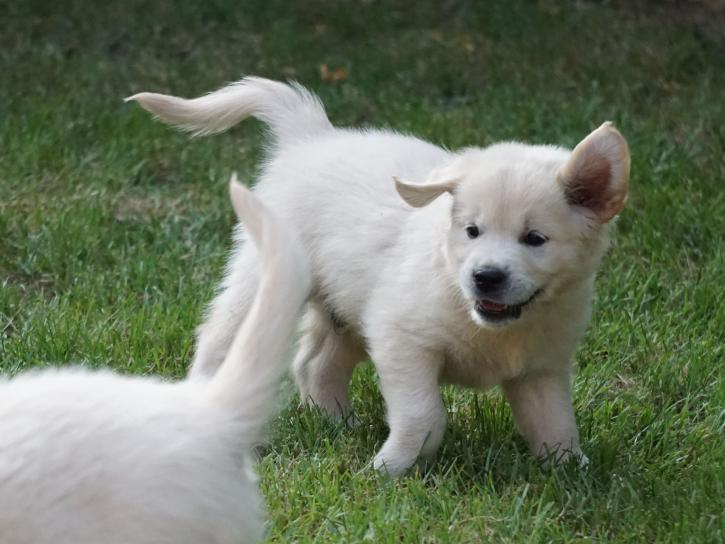 ....mit knapp 7 Wochen sind unsere J´s voll aktiv und strotzen nur so vor Lebensfreude. Jeder unserer 10 kleinen Goldilein ist zu einem gesunden Hund herangewachsen .... es ist eine Freude der Rasselbande beim Spiel zuzusehen. Mittlerweile sind sie groß genug und dürfen ihrem Bewegungsdrang auch auf der großen Wiese freien Lauf lassen.