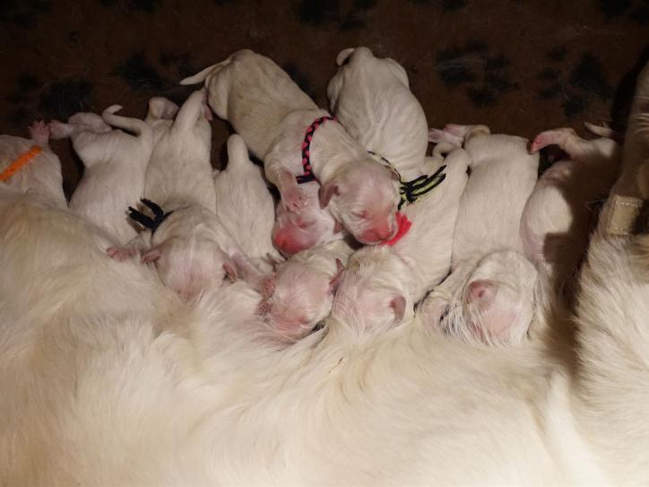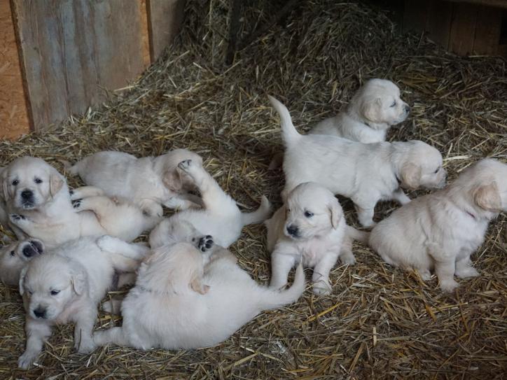 Am 10.07.2017 hat unsere Grace in einer unproblematischen Geburt 10 wunderschöne Welpen zur Welt gebracht. Es sind 7Rüden und 3 Hündinnen in den Farben creme und hellgolden.